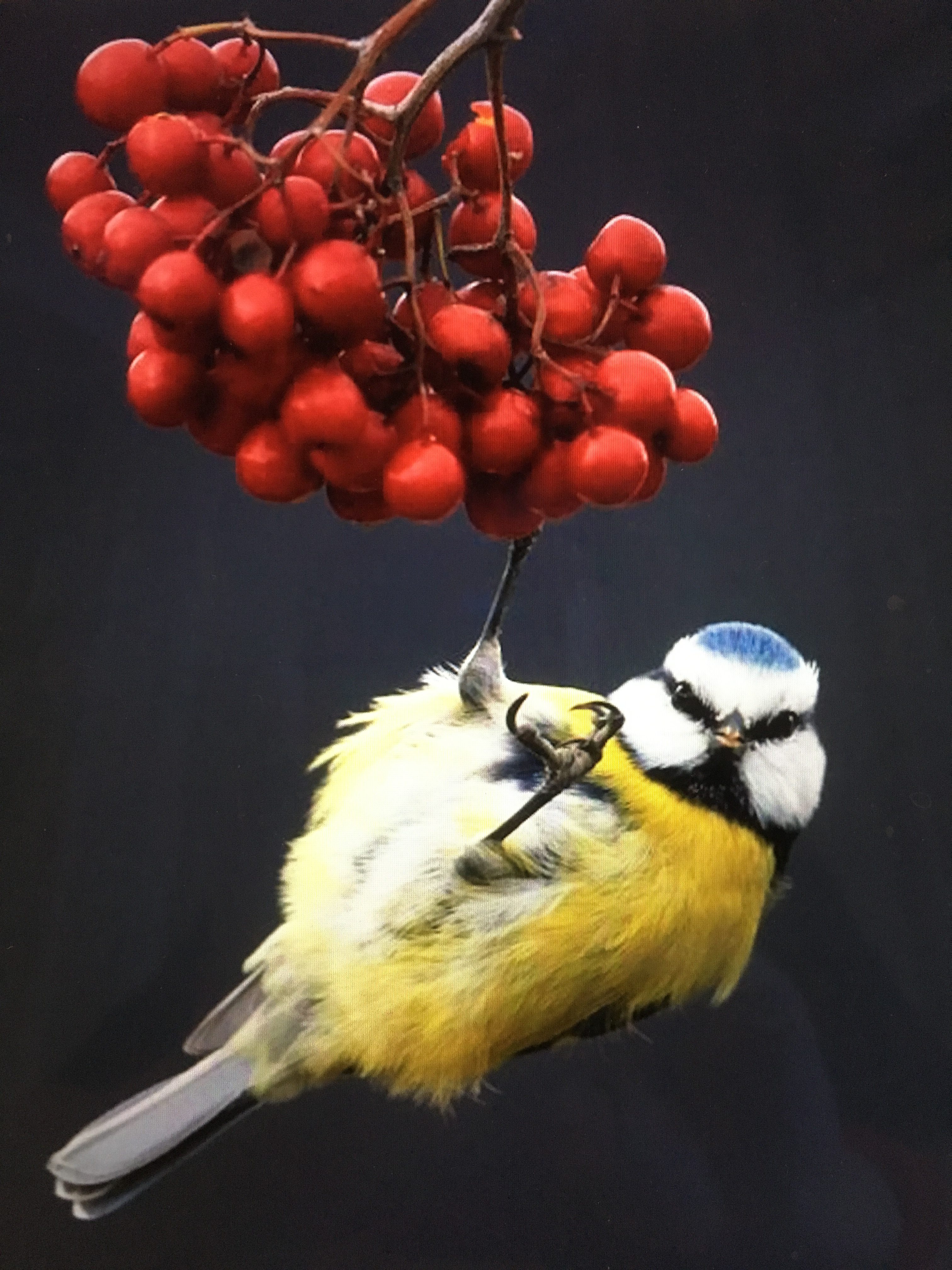 En équilibre sous la grappe de sorbier des oiseleurs.